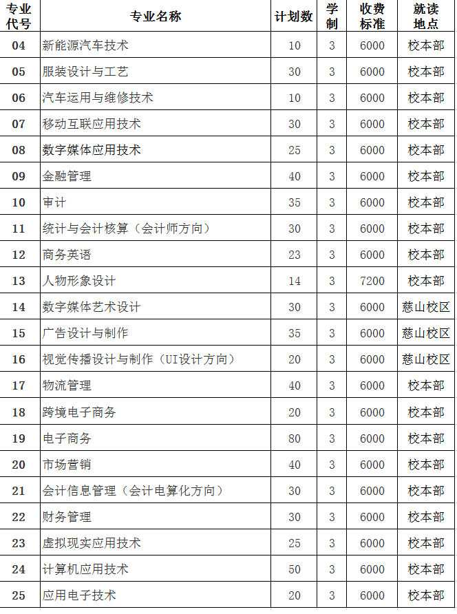 - 高职 面向高中生 面向三校生 招生代码 招生信息 春招 高职