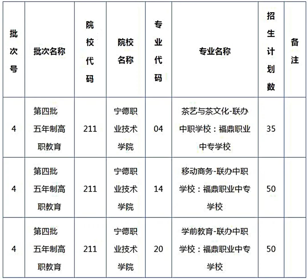 因印刷时间的原因,《2021年宁德市中招招生指南》一书未能公布"三二分段制"(五年专)招生计划。现特将,我校与宁德职业技术学院(公办全日制)的"五年专"专业、专业代码、学校代码给予公布,以便考生填报。