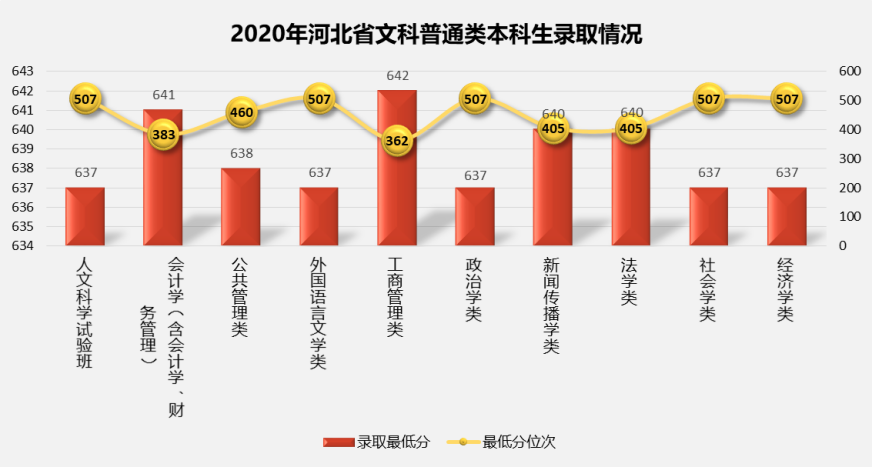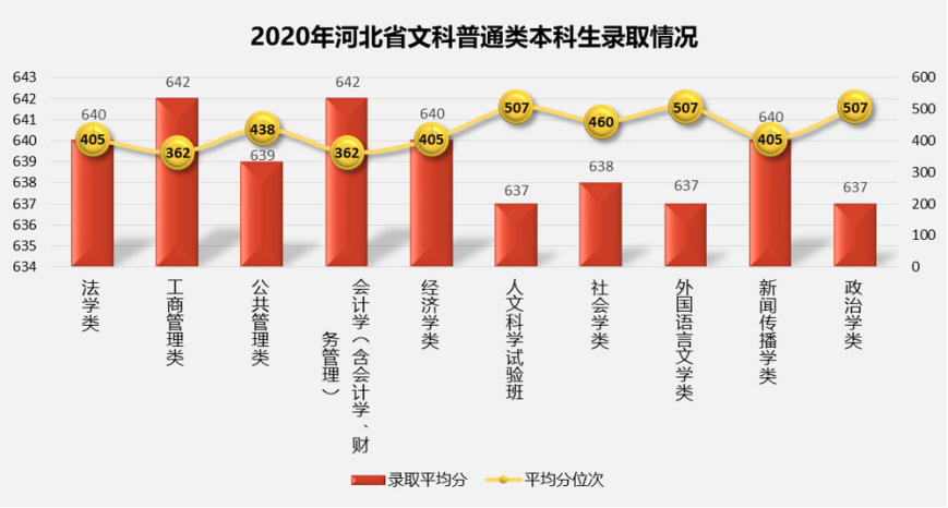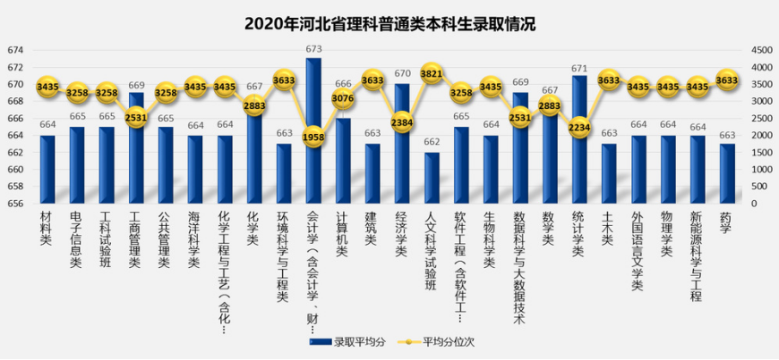 2.2020年河北省普通批次分专业录取平均分及平均分对应位次情况: