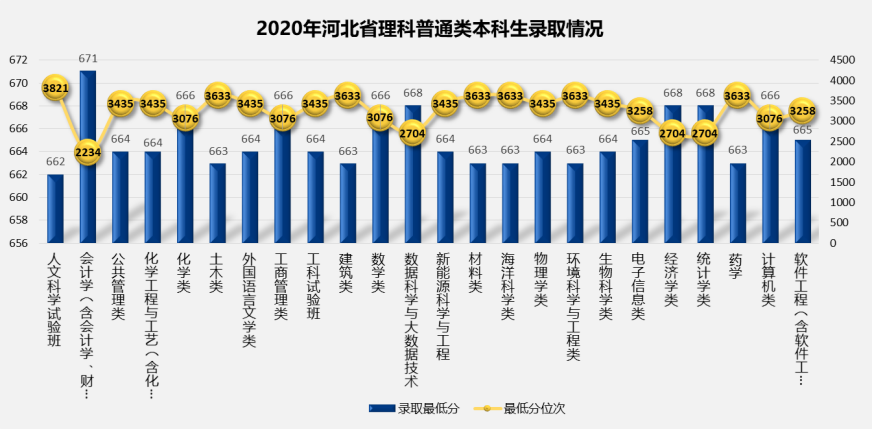 1. 2020年河北省普通批次分专业录取最低分及最低分对应位次情况