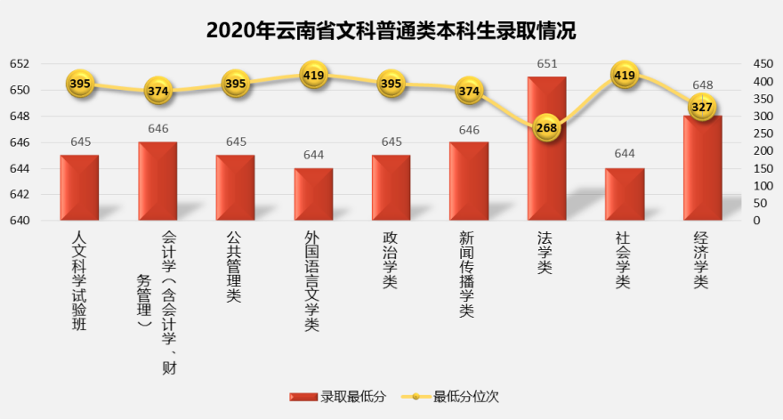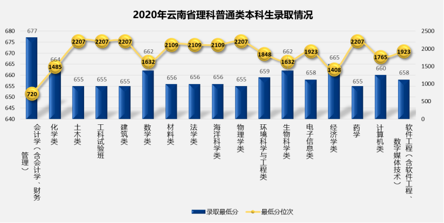 1. 2020年云南省普通批次分专业录取最低分及最低分对应位次情况
