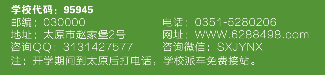 为了帮助学生实现更高理想,学校特设:“精准升学部”,学生通过前两年的专业课程和文化课程学习,在第三年时采取自愿转入我校升学部,学校针对山西各类高校,配备优质名师,采取小班教学指导学生学习,确保每一位同学升入更高一级的院校深造,升学率达到100%。