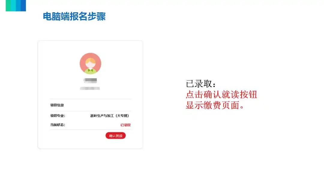 1.被模拟录取后的考生,请按照本招生系统提示,在6月11日15:00前继续完成“确认就读”、“缴费凭证上传”等步骤。