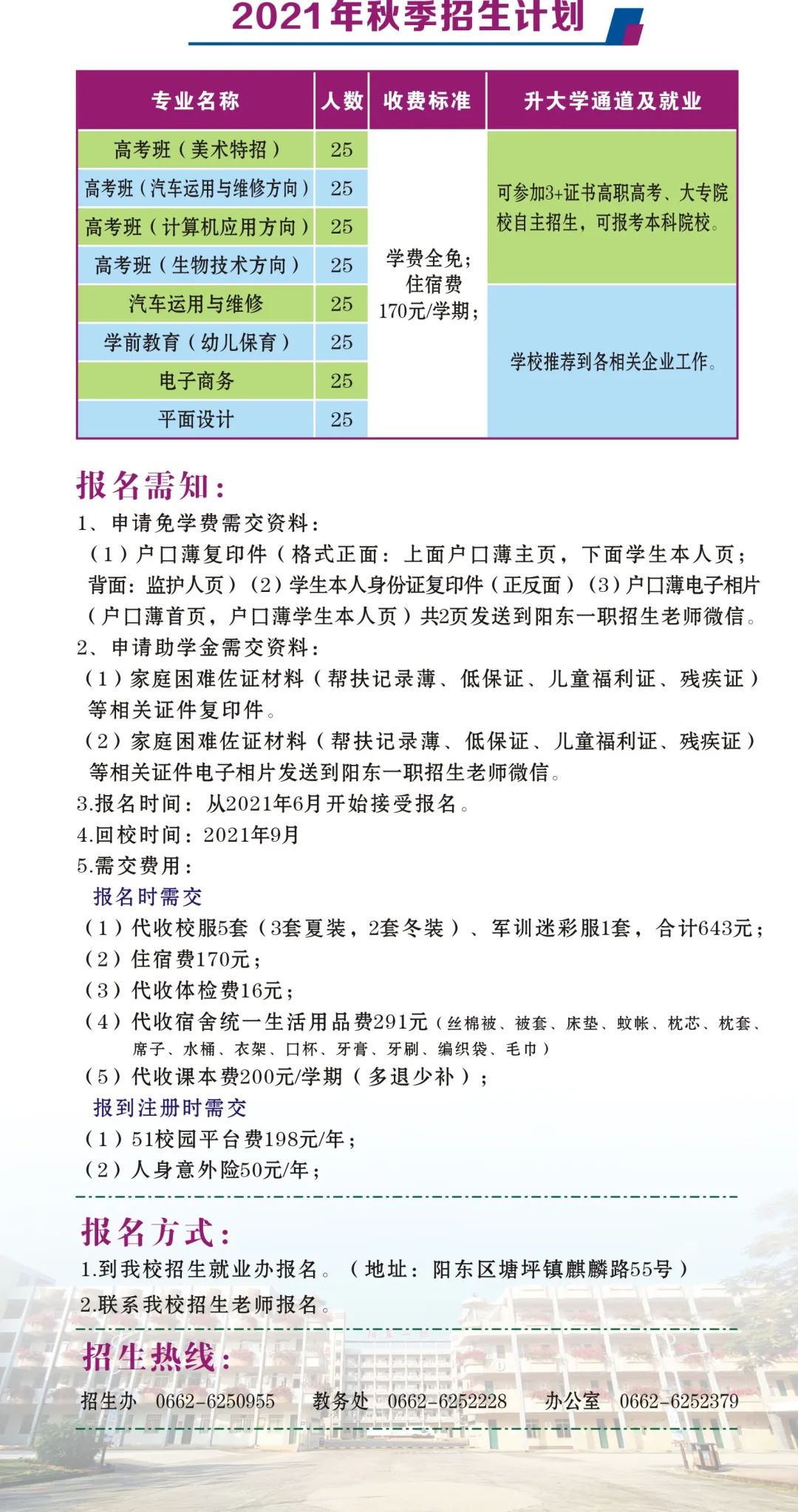 招生办0662-6250955教务处0662-6252228办公室0662-6252379