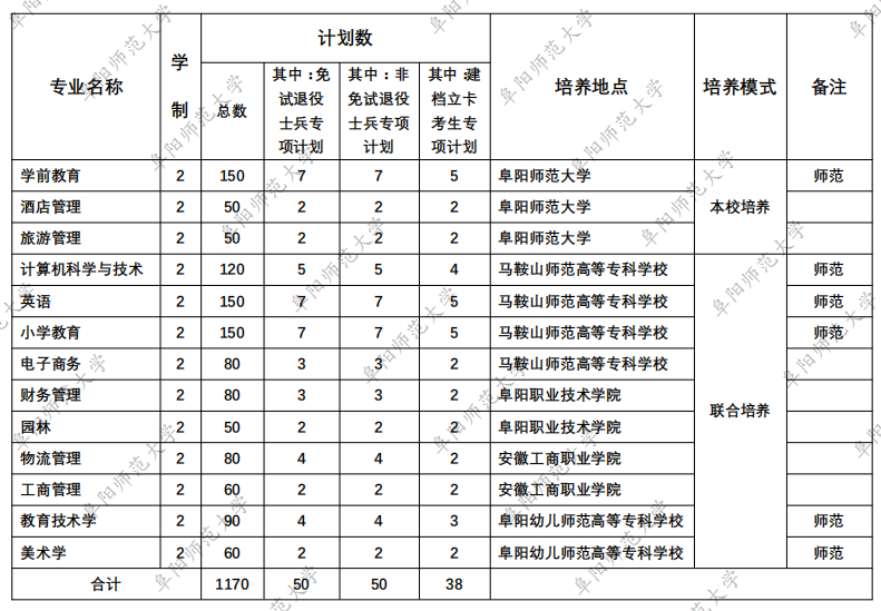 说明:阜阳师范大学2022年普通专升本招生计划以《阜阳师范大学2022年普通专升本招生章程》为准