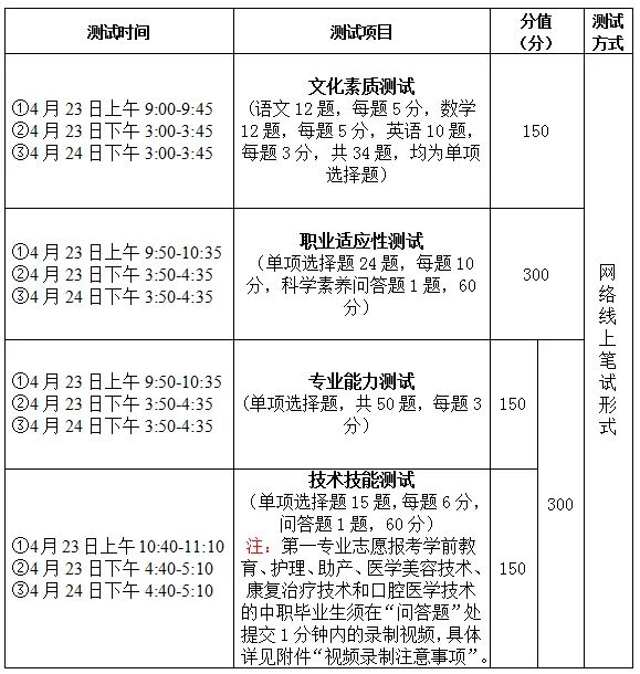 职业技能测试 (按照考生第一专业志愿组织测试) |