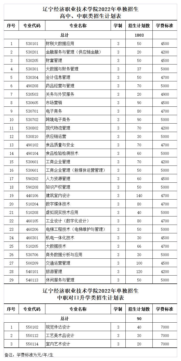 2022年辽宁经济职业技术学院单独招生计划表(图)