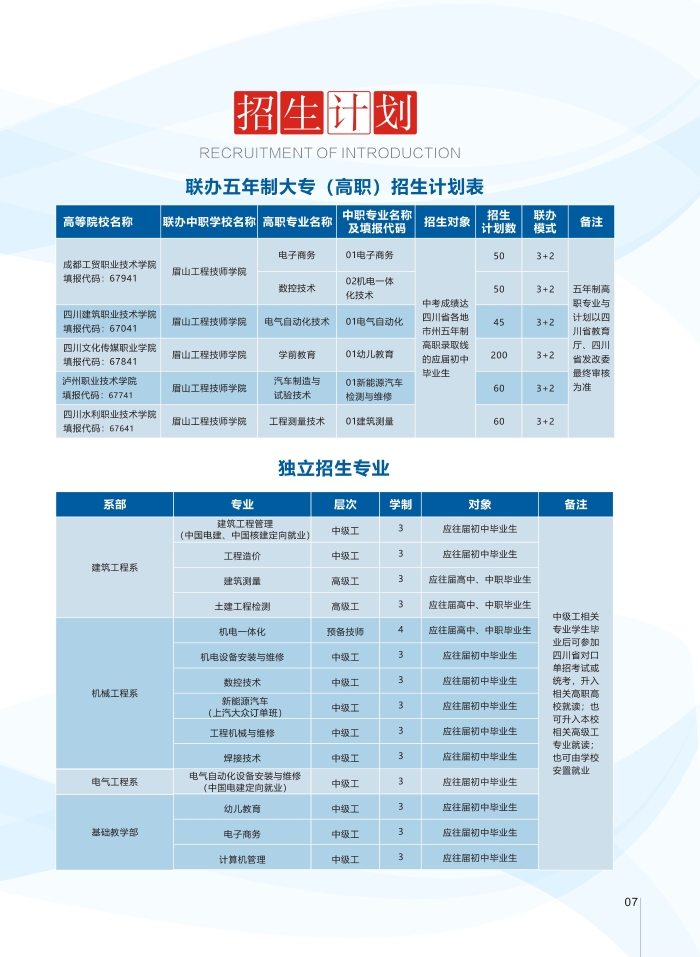 2022年眉山工程技师学院秋季学生招生专业与招生计划(图)