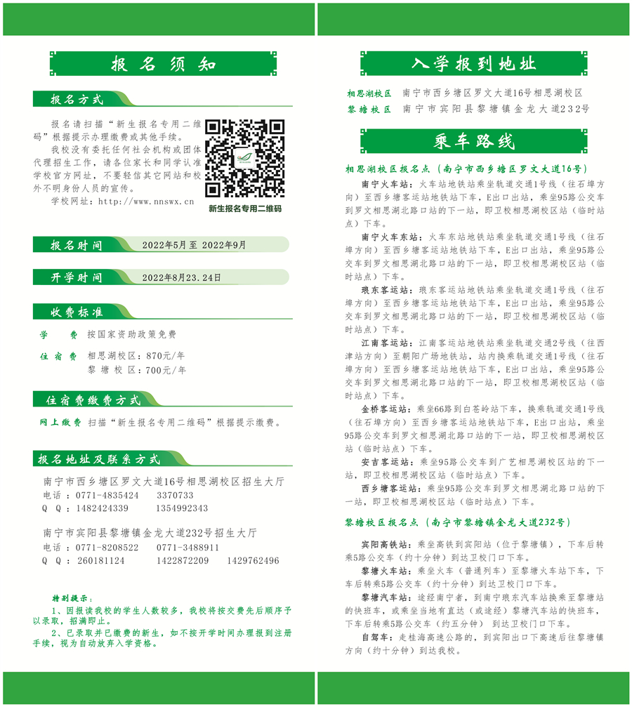 相思湖校区报名点(南宁市西乡塘区罗文大道16号)南宁火车站:火车站地铁站乘坐轨道交通1号线(往石埠方向)至西乡塘客运站地铁站下车,E出口出站,乘坐95路公交车到罗文相思湖北路口站的下一站,即卫校相思湖校区站(临时站点)下车。