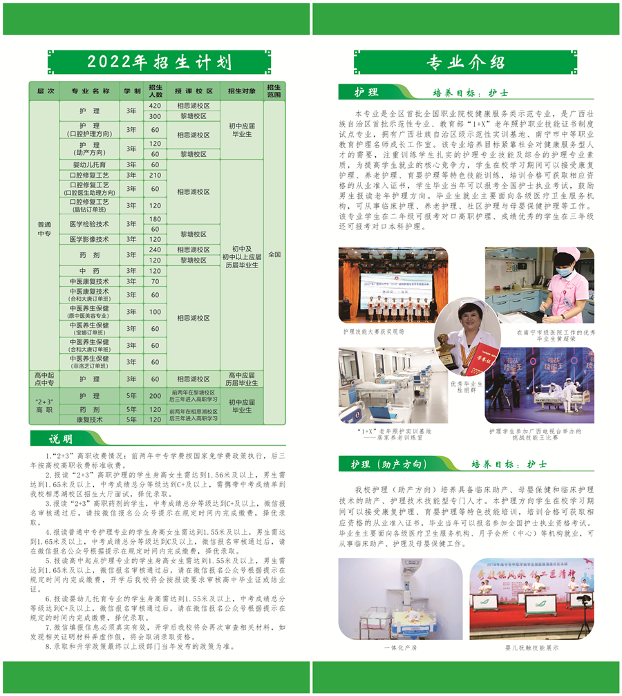 2.报读“2+3”高职护理的学生身高女生需达到1.56米及以上,男生需达到1.65米及以上,中考成绩总分等级达到C+及以上,需携带中考成绩单到我校相思湖校区招生大厅面试,择优录取。