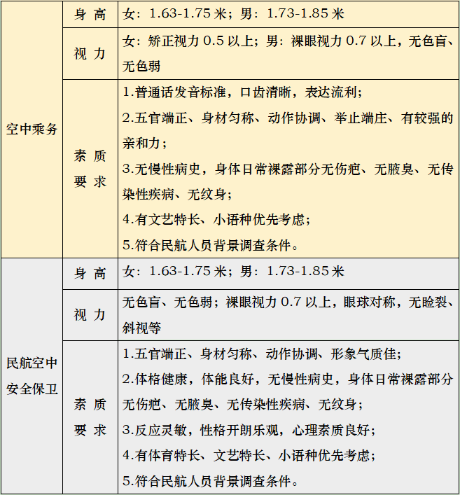考生面试合格后到指定的医院进行体检,项目包括:肝功能、两对半、尿常规、内胸检查、血压、视力、色觉、听力、外科等,体检标准参照《中国民用航空人员医学标准和体检合格证管理规则》。