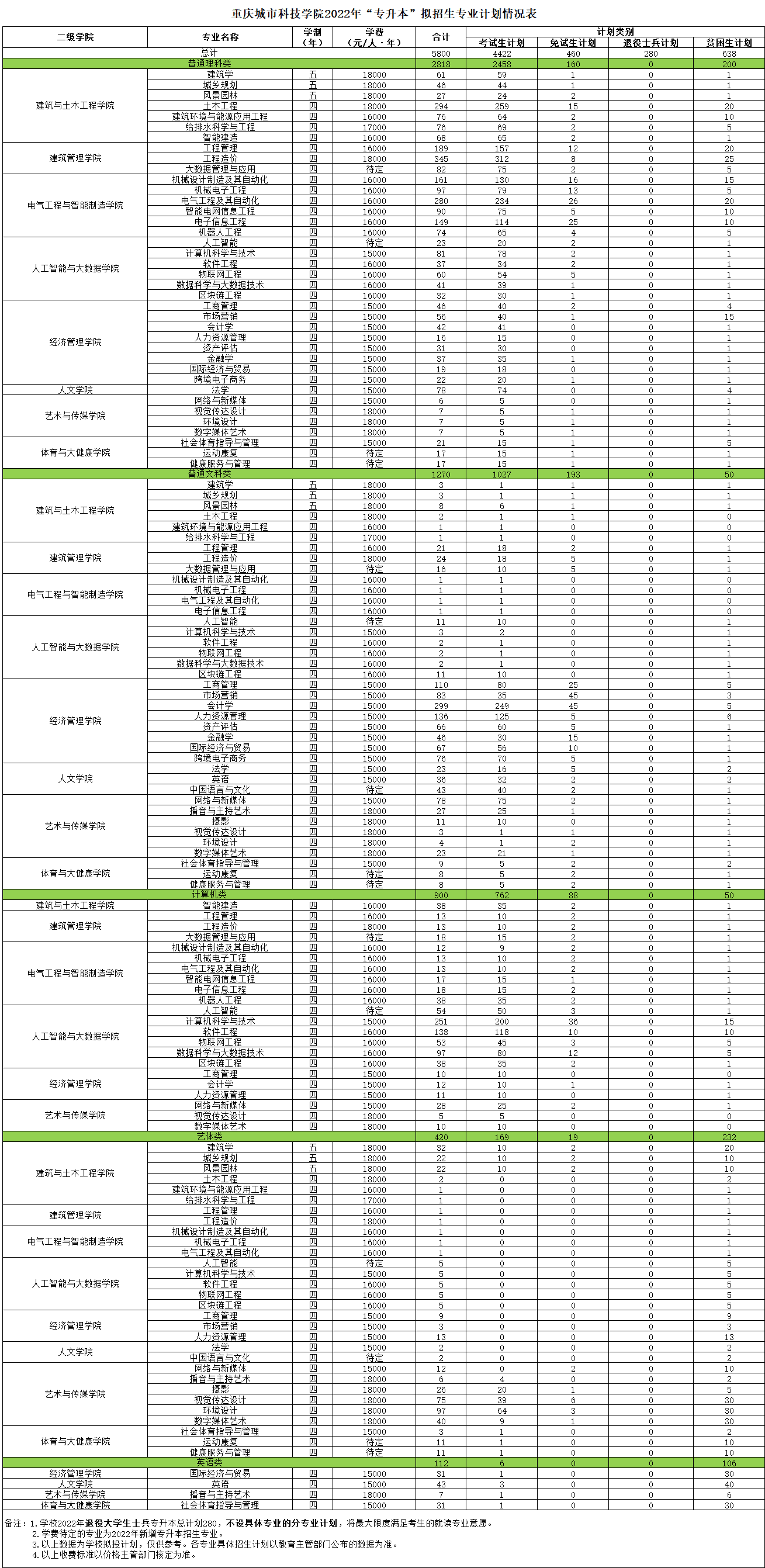 2022年重庆大学城市科技学院“大专升本科”拟招生专业计划情况表(图)